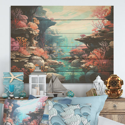 Coral World Expression - Coastal Coral Under Water Wood Wall Art On Natural Pine WoodWood art printed on wood planks is a mesmerizing fusion of nature's intrinsic allure and artistic ingenuity. Each piece starts with a careful selection of wooden planks, chosen for their distinctive grains, knots, and textures, transforming them into canvases of rustic beauty. We employ the highest quality 6-color CanoBeachcrest Home