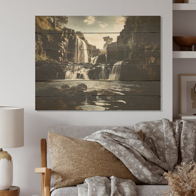 Waterfall River Scenery - Waterfall Wood Panel Wall Art On Natural Pine WoodWood art printed on wood planks is a mesmerizing fusion of nature's intrinsic allure and artistic ingenuity. Each piece starts with a careful selection of wooden planks, chosen for their distinctive grains, knots, and textures, transforming them into canvases of rustic beauty. We employ the highest quality 6-color CanoMillwood Pines