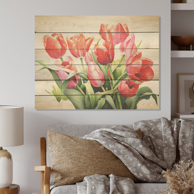 Tulips Minimalism Dream I - Tulips Wood Panel Wall Art On Natural Pine WoodWood art printed on wood planks is a mesmerizing fusion of nature's intrinsic allure and artistic ingenuity. Each piece starts with a careful selection of wooden planks, chosen for their distinctive grains, knots, and textures, transforming them into canvases of rustic beauty. We employ the highest quality 6-color CanoLark Manor