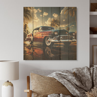Classic Retro Vintage Red Car I - Retro Wood Art On Natural Pine WoodWood art printed on wood planks is a mesmerizing fusion of nature's intrinsic allure and artistic ingenuity. Each piece starts with a careful selection of wooden planks, chosen for their distinctive grains, knots, and textures, transforming them into canvases of rustic beauty. We employ the highest quality 6-color CanoWinston Porter
