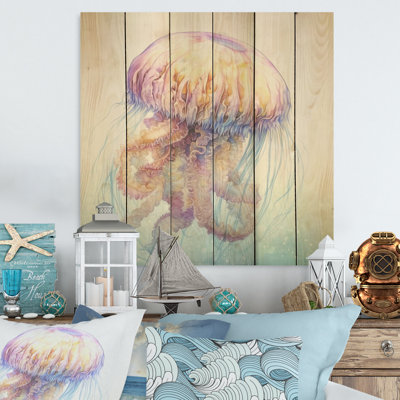 Underwater Enchantment Jellyfish - Jellyfish Wood Wall Art On Natural Pine WoodWood art printed on wood planks is a mesmerizing fusion of nature's intrinsic allure and artistic ingenuity. Each piece starts with a careful selection of wooden planks, chosen for their distinctive grains, knots, and textures, transforming them into canvases of rustic beauty. We employ the highest quality 6-color CanoHighland Dunes
