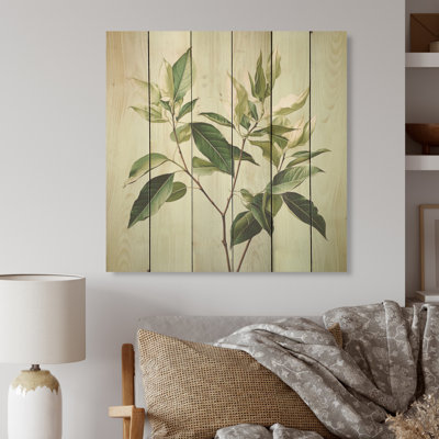 Fresh Mint Minimalism Leaves Serenity - Leaves Wood Wall Art On Natural Pine WoodWood art printed on wood planks is a mesmerizing fusion of nature's intrinsic allure and artistic ingenuity. Each piece starts with a careful selection of wooden planks, chosen for their distinctive grains, knots, and textures, transforming them into canvases of rustic beauty. We employ the highest quality 6-color CanoWinston Porter