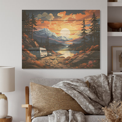 Camping Van Charm At Sunset - Camping Travel Wood Wall Art On Natural Pine WoodWood art printed on wood planks is a mesmerizing fusion of nature's intrinsic allure and artistic ingenuity. Each piece starts with a careful selection of wooden planks, chosen for their distinctive grains, knots, and textures, transforming them into canvases of rustic beauty. We employ the highest quality 6-color CanoMillwood Pines