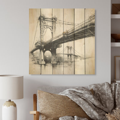 Analytic Drawing Of A Bridges - Bridges Wood Wall Art On Natural Pine WoodWood art printed on wood planks is a mesmerizing fusion of nature's intrinsic allure and artistic ingenuity. Each piece starts with a careful selection of wooden planks, chosen for their distinctive grains, knots, and textures, transforming them into canvases of rustic beauty. We employ the highest quality 6-color CanoWilliston Forge