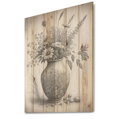Monochrome Black And White Pencil Still Life III - Floral Wood Wall Art - Natural Pine WoodAlas, a modern take on wood wall art. Once typically a wall art piece found only in rustic or farmhouse-style decor settings, this Floral wood wall art will easily fit into even the most contemporary of designs. Using the highest quality 6 Color Canon UV Ink, this Floral & Botanical wood wall art incorporates several aRed Barrel Studio