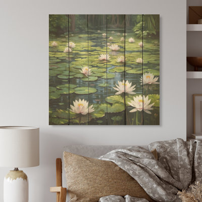 Magical Lotus Lily Pad Pond - Lotus Wood Wall Art On Natural Pine WoodWood art printed on wood planks is a mesmerizing fusion of nature's intrinsic allure and artistic ingenuity. Each piece starts with a careful selection of wooden planks, chosen for their distinctive grains, knots, and textures, transforming them into canvases of rustic beauty. We employ the highest quality 6-color CanoBungalow Rose