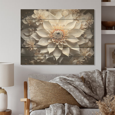 Minimalism White Dahlia I - Dahlia Wood Wall Art On Natural Pine WoodWood art printed on wood planks is a mesmerizing fusion of nature's intrinsic allure and artistic ingenuity. Each piece starts with a careful selection of wooden planks, chosen for their distinctive grains, knots, and textures, transforming them into canvases of rustic beauty. We employ the highest quality 6-color CanoWinston Porter
