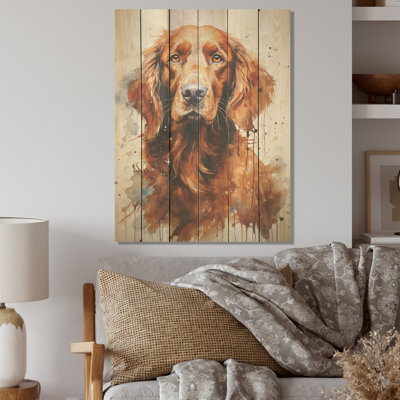 Dog Irish Setter Impressions - Dog Wood Wall Art On Natural Pine WoodWood art printed on wood planks is a mesmerizing fusion of nature's intrinsic allure and artistic ingenuity. Each piece starts with a careful selection of wooden planks, chosen for their distinctive grains, knots, and textures, transforming them into canvases of rustic beauty. We employ the highest quality 6-color CanoLark Manor