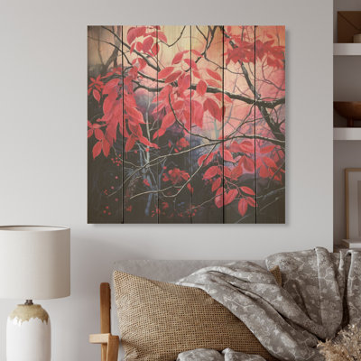 Red And Black Minimalist Botanical Leaves I - Leaves Wood Wall Art On Natural Pine WoodWood art printed on wood planks is a mesmerizing fusion of nature's intrinsic allure and artistic ingenuity. Each piece starts with a careful selection of wooden planks, chosen for their distinctive grains, knots, and textures, transforming them into canvases of rustic beauty. We employ the highest quality 6-color CanoWinston Porter