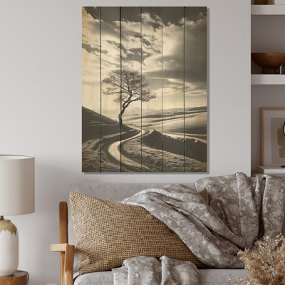 Road Black And White Mimalism Scenery - Road Wood Panel Wall Art On Natural Pine WoodWood art printed on wood planks is a mesmerizing fusion of nature's intrinsic allure and artistic ingenuity. Each piece starts with a careful selection of wooden planks, chosen for their distinctive grains, knots, and textures, transforming them into canvases of rustic beauty. We employ the highest quality 6-color CanoLark Manor