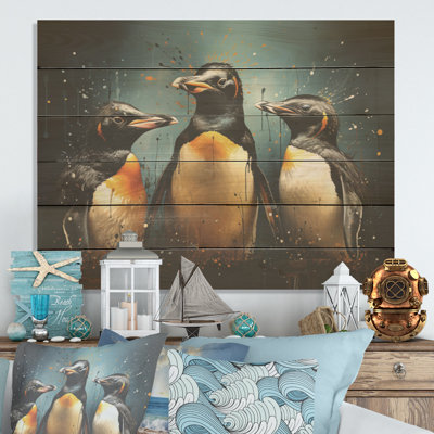 Chill And Chic Penguins - Penguin Wood Art Print On Natural Pine WoodWood art printed on wood planks is a mesmerizing fusion of nature's intrinsic allure and artistic ingenuity. Each piece starts with a careful selection of wooden planks, chosen for their distinctive grains, knots, and textures, transforming them into canvases of rustic beauty. We employ the highest quality 6-color CanoLark Manor