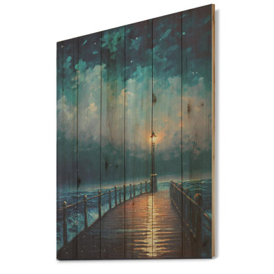 Light At The End Of The Pier During Stormy Night I - Beach Wood Wall Art - Natural Pine WoodAlas, a modern take on wood wall art. Once typically a wall art piece found only in rustic or farmhouse style decor settings, this Nautical & Beach wood wall art will easily fit into even the most contemporary of designs. Using the highest quality 6 Color Canon UV Ink, this Landscape & Nature wood wall art incorporatesDovecove
