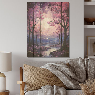 Oak Trees In Amethyst Hues River - Tree Oak Wood Art On Natural Pine WoodWood art printed on wood planks is a mesmerizing fusion of nature's intrinsic allure and artistic ingenuity. Each piece starts with a careful selection of wooden planks, chosen for their distinctive grains, knots, and textures, transforming them into canvases of rustic beauty. We employ the highest quality 6-color CanoOphelia & Co.