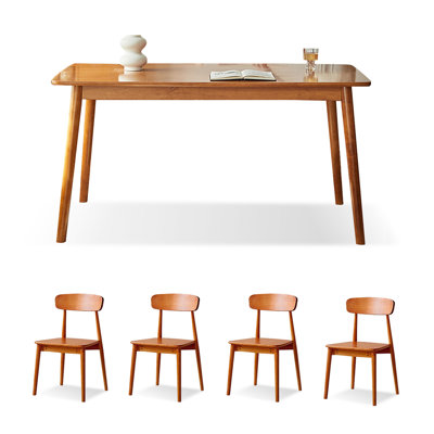 4 - Person Cherry Wood Color Rectangular Solid Wood Dining Table SetDiscover the timeless elegance and exceptional craftsmanship of our rectangular dining table and chair set, meticulously crafted from the finest rubberwood in a captivating cherry wood color. This stunning ensemble seamlessly blends form, function, and style, creating the perfect focal point for your dining area.CompriCorrigan Studio