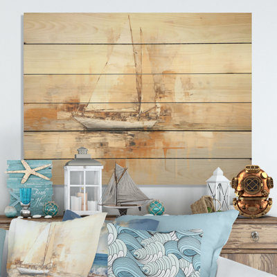Sailing Boat On The Sea I - Sailing Wood Art On Natural Pine WoodWood art printed on wood planks is a mesmerizing fusion of nature's intrinsic allure and artistic ingenuity. Each piece starts with a careful selection of wooden planks, chosen for their distinctive grains, knots, and textures, transforming them into canvases of rustic beauty. We employ the highest quality 6-color CanoBreakwater Bay