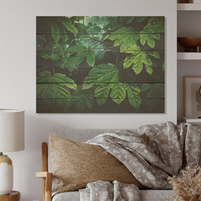 Emerald Canopy Rainforest Leaves - Leaves Wood Wall Art On Natural Pine WoodWood art printed on wood planks is a mesmerizing fusion of nature's intrinsic allure and artistic ingenuity. Each piece starts with a careful selection of wooden planks, chosen for their distinctive grains, knots, and textures, transforming them into canvases of rustic beauty. We employ the highest quality 6-color CanoBay Isle Home