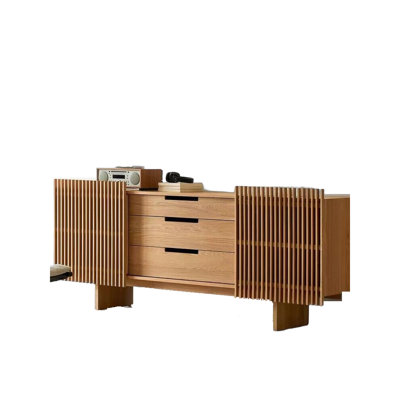 Simple Design Solid Wood Sideboard 70.86'' Solid Wood SideboardUnveil the epitome of convenience and structural aesthetics with our Sideboard.Its stylish tall legs easily accommodate your cleaning robot, giving you unimpeded access for daily operations and household management.Designed with vertical slat detailing , this real wood product exudes a robust sense of design. IndustriaIndustrial Style Sofa