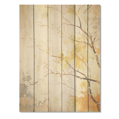Peach And Beige Tree Sycamores Song I - Tree Sycamore Wood Panel Wall Art On Natural Pine WoodWood art printed on wood planks is a mesmerizing fusion of nature's intrinsic allure and artistic ingenuity. Each piece starts with a careful selection of wooden planks, chosen for their distinctive grains, knots, and textures, transforming them into canvases of rustic beauty. We employ the highest quality 6-color CanoLark Manor