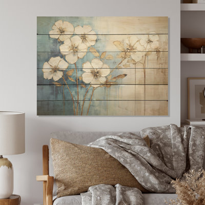 Golden Blue Geraniums Bloom - Geraniums Wood Wall Art On Natural Pine WoodWood art printed on wood planks is a mesmerizing fusion of nature's intrinsic allure and artistic ingenuity. Each piece starts with a careful selection of wooden planks, chosen for their distinctive grains, knots, and textures, transforming them into canvases of rustic beauty. We employ the highest quality 6-color CanoWinston Porter
