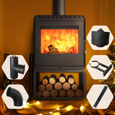 3200 Square Feet Direct Vent Freestanding Wood Burning Stove Wood Pellets Burner Natural Vent Fireplace (with Specific Installation Tools)Rediscover the charm of a crackling fire with the freestanding wood-burning stove. Engineered with advanced clean combustion technology, this stove is both eco-friendly and exceptionally efficient, boasting an 80% combustion efficiency that surpasses industry standards. It features premium Germany-imported safety microBrooveWave