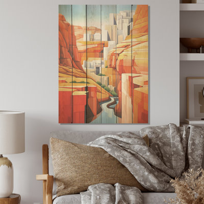 Canyon De Stijl Inspired Lansdcape I - Canyon Wood Wall Art On Natural Pine WoodWood art printed on wood planks is a mesmerizing fusion of nature's intrinsic allure and artistic ingenuity. Each piece starts with a careful selection of wooden planks, chosen for their distinctive grains, knots, and textures, transforming them into canvases of rustic beauty. We employ the highest quality 6-color CanoOphelia & Co.