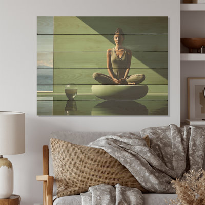Yogic Balance Horizon - Yoga Wood Panel Wall Art On Natural Pine WoodWood art printed on wood planks is a mesmerizing fusion of nature's intrinsic allure and artistic ingenuity. Each piece starts with a careful selection of wooden planks, chosen for their distinctive grains, knots, and textures, transforming them into canvases of rustic beauty. We employ the highest quality 6-color CanoLatitude Run