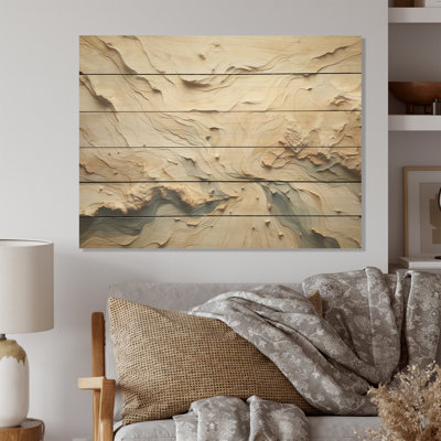 Beige Minimalism River Mountain Wonders - River Mountain Wood Art On Natural Pine WoodWood art printed on wood planks is a mesmerizing fusion of nature's intrinsic allure and artistic ingenuity. Each piece starts with a careful selection of wooden planks, chosen for their distinctive grains, knots, and textures, transforming them into canvases of rustic beauty. We employ the highest quality 6-color CanoWrought Studio
