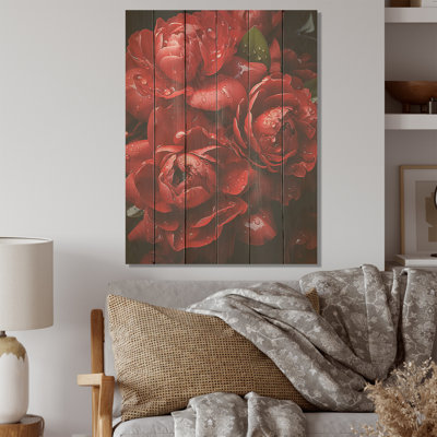 Crimson Peonies Elegance - Peonies Wood Art On Natural Pine WoodWood art printed on wood planks is a mesmerizing fusion of nature's intrinsic allure and artistic ingenuity. Each piece starts with a careful selection of wooden planks, chosen for their distinctive grains, knots, and textures, transforming them into canvases of rustic beauty. We employ the highest quality 6-color CanoLark Manor