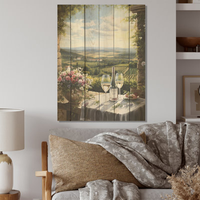 Vineyard Romantic Charm Landscape - Vineyard Wood Panel Wall Art On Natural Pine WoodWood art printed on wood planks is a mesmerizing fusion of nature's intrinsic allure and artistic ingenuity. Each piece starts with a careful selection of wooden planks, chosen for their distinctive grains, knots, and textures, transforming them into canvases of rustic beauty. We employ the highest quality 6-color CanoLark Manor