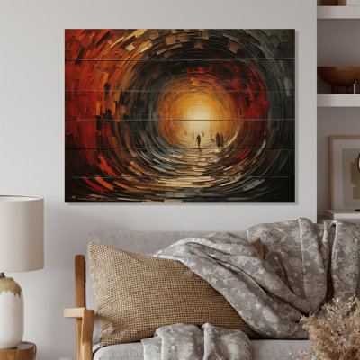 Abstract Red Wood Tunnel II Print on Natural WoodWood art printed on wood planks is a mesmerizing fusion of nature's intrinsic allure and artistic ingenuity. Each piece starts with carefully selecting wooden planks, chosen for their distinctive grains, knots, and textures, transforming them into canvases of rustic beauty. We employ the highest quality 6-color Canon URed Barrel Studio