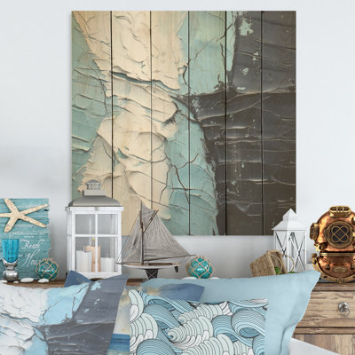 Minimalism Black And Blue Paint Corner - Coastal Wood Wall Art On Natural Pine WoodWood art printed on wood planks is a mesmerizing fusion of nature's intrinsic allure and artistic ingenuity. Each piece starts with a careful selection of wooden planks, chosen for their distinctive grains, knots, and textures, transforming them into canvases of rustic beauty. We employ the highest quality 6-color CanoWrought Studio