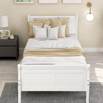 Twin Size Bed Frame With Headboard And Footboard, Wood Platform Bed Twin Bed With Wood Slat SupportThis Wood Platform Bed with Headboard & Footboard is a minimalist, stylish bed base that works well with a variety of decorating styles and makes it easy for you to beautify the look of your bedroom. The bed contains an integrated headboard & footboard. It fits most Twin-size mattresses and does not require a box sprinCanora Grey