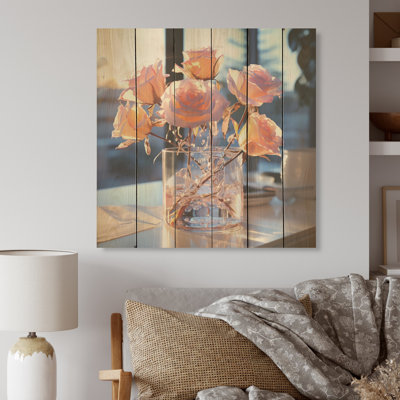 Modern White Roses Transparent Romance I - Roses Wood Art On Natural Pine WoodWood art printed on wood planks is a mesmerizing fusion of nature's intrinsic allure and artistic ingenuity. Each piece starts with a careful selection of wooden planks, chosen for their distinctive grains, knots, and textures, transforming them into canvases of rustic beauty. We employ the highest quality 6-color CanoLark Manor