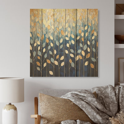 Gold And Blue Leaves Scenery Minimalism - Leaves Wood Wall Art On Natural Pine WoodWood art printed on wood planks is a mesmerizing fusion of nature's intrinsic allure and artistic ingenuity. Each piece starts with a careful selection of wooden planks, chosen for their distinctive grains, knots, and textures, transforming them into canvases of rustic beauty. We employ the highest quality 6-color CanoWinston Porter