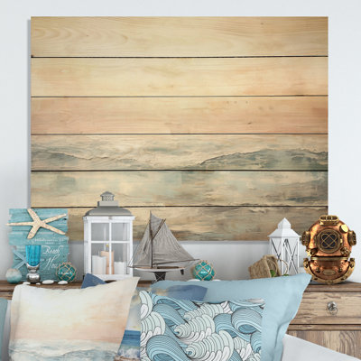 Modern Coastal Beige And Blue River - Coastal Ocean Wood Wall Art On Natural Pine WoodWood art printed on wood planks is a mesmerizing fusion of nature's intrinsic allure and artistic ingenuity. Each piece starts with a careful selection of wooden planks, chosen for their distinctive grains, knots, and textures, transforming them into canvases of rustic beauty. We employ the highest quality 6-color CanoMillwood Pines