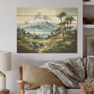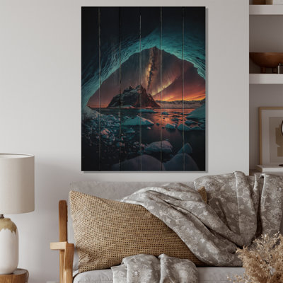 Aurora Borealis Magical Northern Lights III - Landscape Mountains Wood Wall Art - Natural Pine WoodAlas, a modern take on wood wall art. Once typically a wall art piece found only in rustic or farmhouse style decor settings, this Landscape Mountains wood wall art will easily fit into even the most contemporary of designs. Using the highest quality 6 Color Canon UV Ink, this Landscape & Nature wood wall art incorporaMillwood Pines