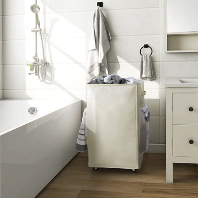 • 90L Rolling Laundry Basket Large Laundry Hamper With Wheels Collapsible Clothes Hamper Rolling Tall Laundry Storage Cart Foldable Clothes Organizer (BThis wheeled laundry basket ensures easy movement and frees your hands. Lock the wheels when not in use and place the laundry basket in one place. Two soft handles allow you to pull the wheeled laundry basket in all directions. Double 600D Oxford cloth laundry basket, thick and durable. Side bags are ideal for small it