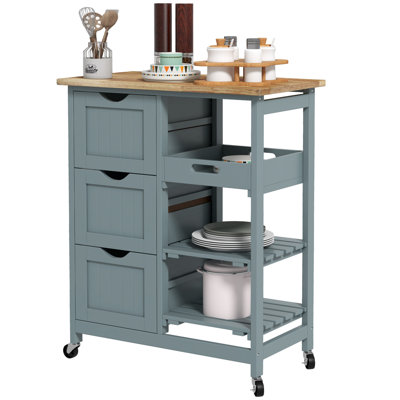 HOMCOM Rolling Kitchen Island Cart, Bar Serving Cart, Compact Trolley on Wheels with Wood TopExtra cutting board: No one can deny that wooden kitchen countertops look really good in the kitchen. Rubberwood cutting surfaces, wide cutting boards provide you with a strong working space. Winston Porter Base Color: GrayWinston Porter