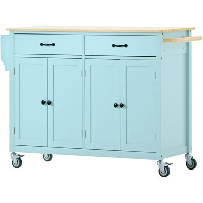 Cayci Rolling Kitchen Island with Solid + Manufactured Wood TopThis retro kitchen island, with strong manufactured wood and rolling casters for a fresh and comfortable experience, is versatile, this kitchen cart offers drawers and cabinet space with doors for storing your belongings, and the bottom of the car is done by rolling casters with locks for effortless transport. FeaturinLatitude Run