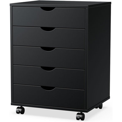 Chest Wood File Cabinet Rolling Organization Storage Dresser With Wheels,Black,5 DrawerProfessional Storage Solution Your Professional Storage Solution. Keep your files organized and easily accessible with this versatile filing cabinet. Its multiple drawers provide ample space for file storage, office supplies, and more, making it an essential tool for efficient organization. Enhance your workspace withLatitude Run