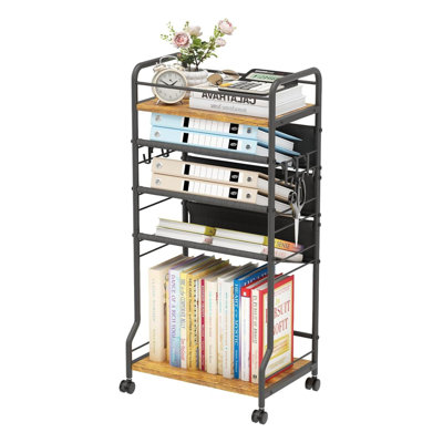 5 Tier Rolling File Cart, Mobile Book Cart With Wheels, Metal Wood Movable Bookshelf Tableside Office Cart Paper Storage File Organizer,BlackOur rolling file carts with wheels features a 5 tier capacity that is sufficient to accommodate most of your office supplies such as files, books, folders, paper, magazines and stationery; Additionally, this book cart is equipped with 5 movable hooks on the side, providing you with additional hanging storage space; SimElaine Mercure