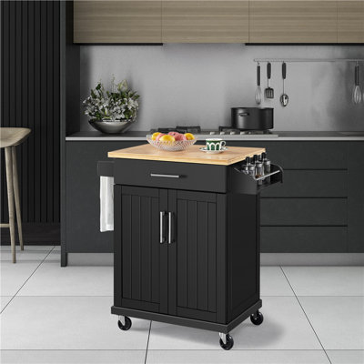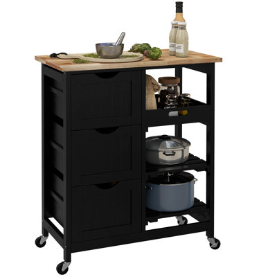 HOMCOM Rolling Kitchen Island Cart, Bar Serving Cart, Compact Trolley on Wheels with Wood TopExtra cutting board: No one can deny that wooden kitchen countertops look really good in the kitchen. Rubberwood cutting surfaces, wide cutting boards provide you with a strong working space. Winston Porter Base Color: BlackWinston Porter
