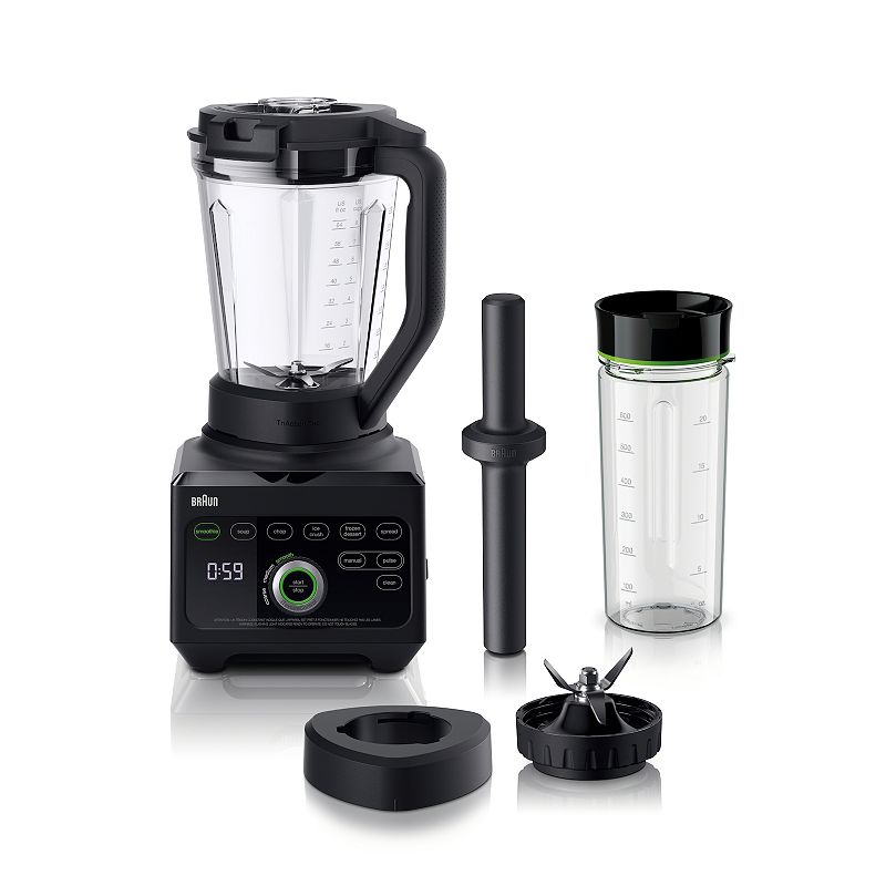 TriForce Pro Power Blender with Smoothie2Go, BlackThe Braun TriForce Power Blender with Smoothie2Go is the first-ever power blender to feature a triangular jug design with state-of-the-art TriAction technology, ensuring superior performance and sophisticated spin functionality with every use. The Braun TriForce Power Blender with Smoothie2Go is the first-ever power blBraun