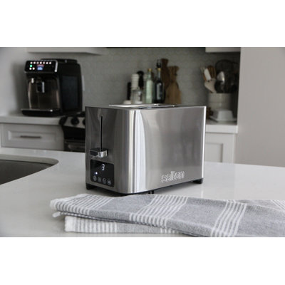 Salton 4 Slice Digital Stainless Steel ToasterRemovable crumb tray for easy cleaning Anti-fingerprint finish Toasts frozen bread, bagels, waffles, and more toast, etc Variable 6 position browning control LCD display with digital control panel Self-adjusting bread guides accommodate various thicknesses SaltonSalton