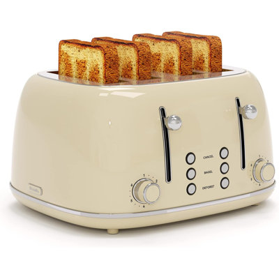 Retro Stainless Toaster with 6 Bread Shade Settings 4 Slice4 slice toaster comes with food grade 18/8 stainless steel body. 1.5inch 4 slot extended heating surface allows for a wide variety of items to be toasted such as waffle, Muffin, bagel, etc. Amaxot Color: CreamAmaxot