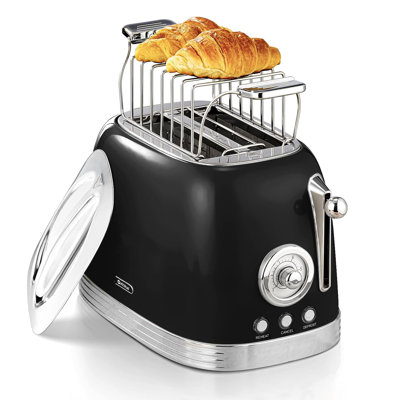 Toaster Retro 2 Slice, Vintage ToasterRetro toaster 2 slice is equipped with 2 widened toasting slots (4cmx14cmx13cm) to toast a variety of thin and thick breads. Enjoy a delicious breakfast at home with toast, sliced bread, sandwich slices and more.Toaster with toast attachment, ideal for toasting croissants and rolls, features a stainless steel lid thatLUCULY