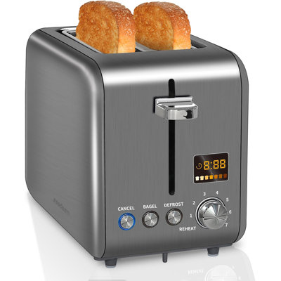 Toaster 2 Slice, Stainless Steel Bread Toaster LCD Display, 7 Bread Shade Settings, 1.4'' Wide SlotsToaster 2 Slice, Stainless Steel Bread Toaster LCD Display, 7 Bread Shade Settings, 1.4'' Wide Slots seedeem Color: Grayseedeem