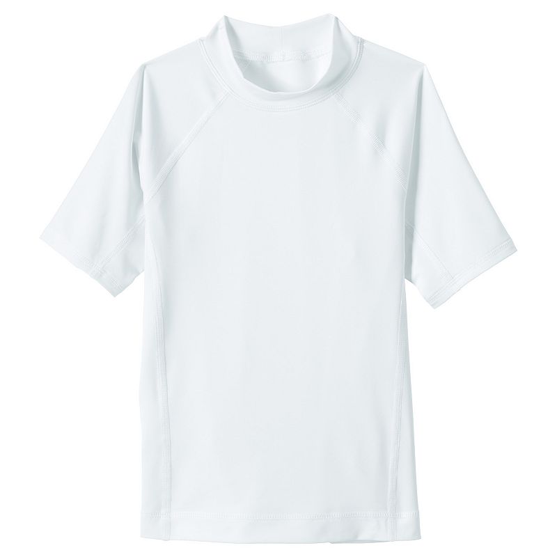 Boys 2-20 Lands' End Chlorine Resistant Short Sleeve Crewneck Rash Guard Swim Shirt, Boy's, Size: Small(6/7), WhiteMake sure he's ready for a day by the pool or beach with this Boys 2-20 Lands' End Chlorine Resistant Short Sleeve Crewneck Rash Guard Swim Shirt. Click on this KIDS APPAREL & SHOES GUIDE to find the perfect fit and more! FEATURES Crewneck Short sleeves Stretchy jersey construction Moisture wicking technology UPF 50 prLands' End