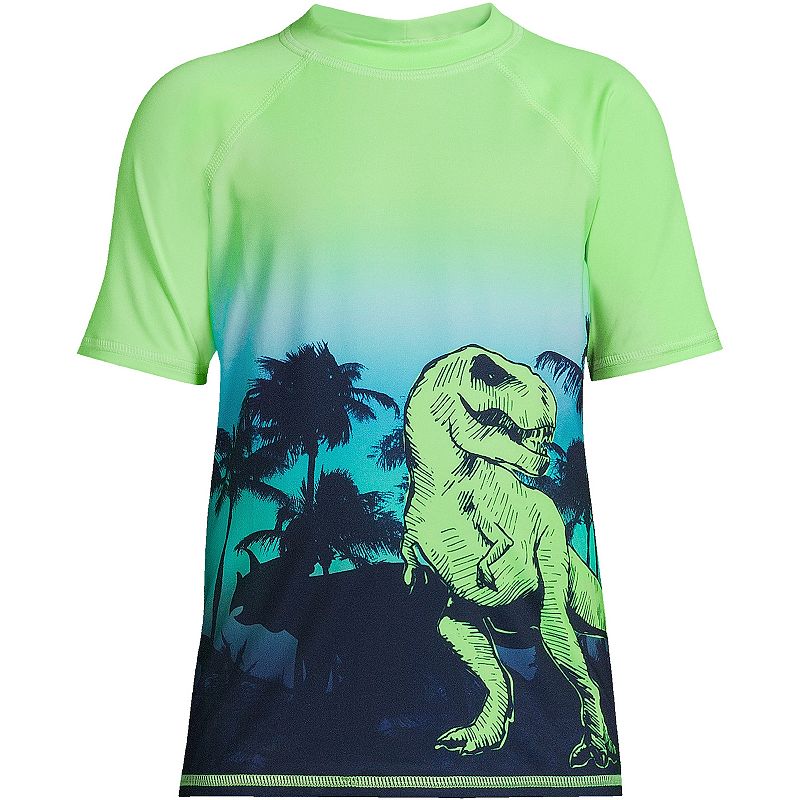 Boys 2-20 Lands' End Chlorine Resistant Short Sleeve Crewneck Rash Guard Swim Shirt, Boy's, Size: Large (10/12), Blue Sunset DinosaurMake sure he's ready for a day by the pool or beach with this Boys 2-20 Lands' End Chlorine Resistant Short Sleeve Crewneck Rash Guard Swim Shirt. Click on this KIDS APPAREL & SHOES GUIDE to find the perfect fit and more! FEATURES Crewneck Short sleeves Stretchy jersey construction Moisture wicking technology UPF 50 prLands' End