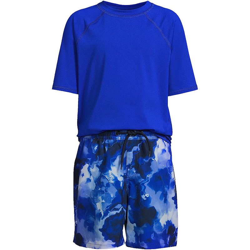 Boys 2-20 Lands' End 2-pc. Rash Guard and Swim Trunks Swimsuit Set, Boy's, Size: XXS(2/3), Blue Marble Tie DyeGive him cool style for the beach or pool with this boys' rash guard and matching swim trunks set from Lands' End. Click on this KIDS APPAREL & SHOES GUIDE to find the perfect fit and more! FEATURES Two-piece set includes rash guard & swim trunks Rash guard: crewneck, short sleeves Trunks: faux fly, elastic waistband wLands' End